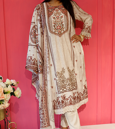 cotton heavy neck line salwar with beautiful cotton mul dupatta, plain pant and elasticated waist band